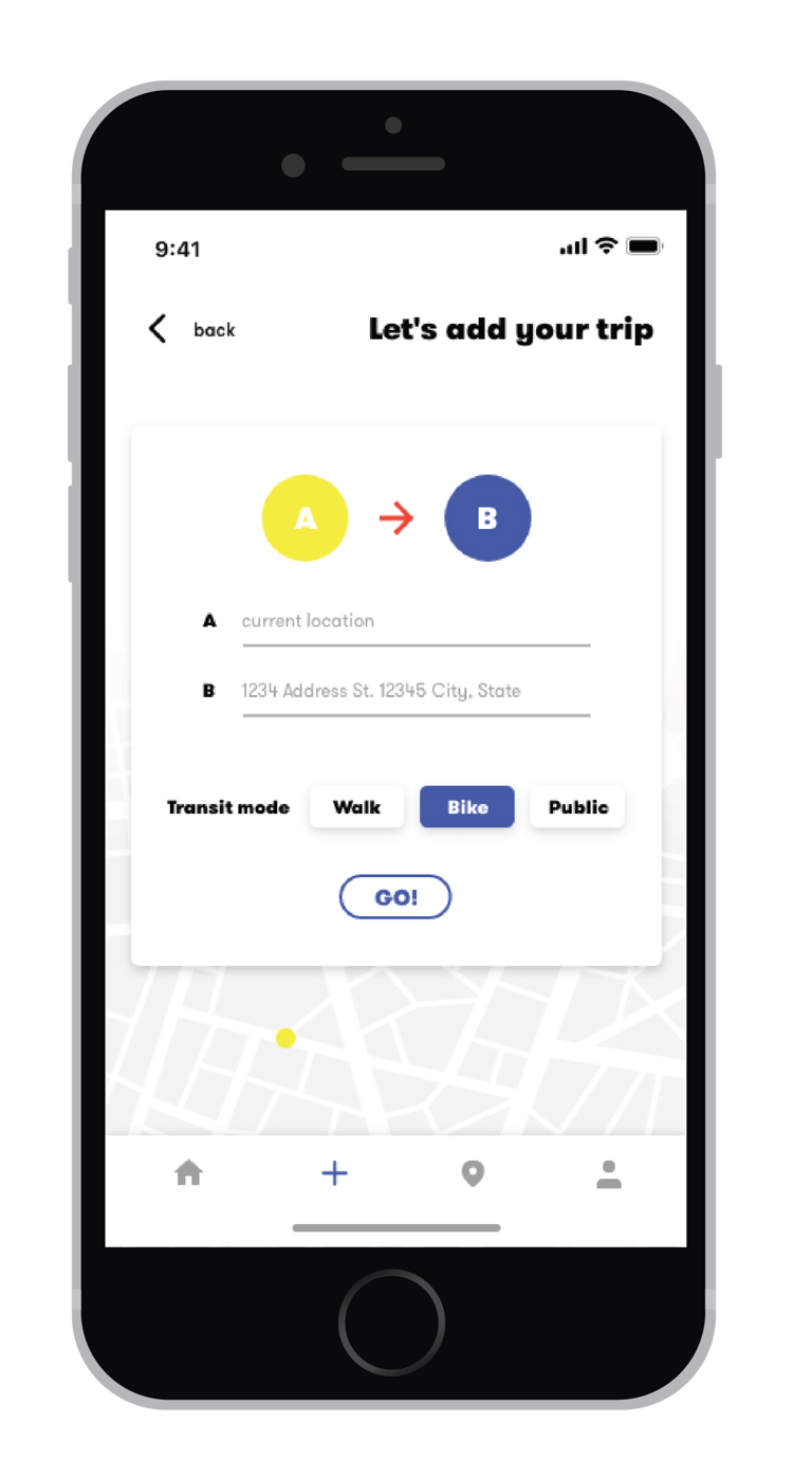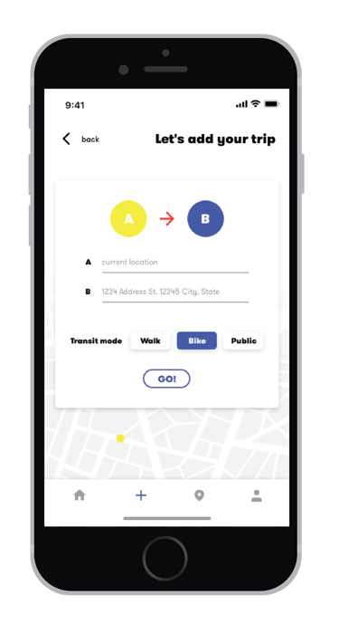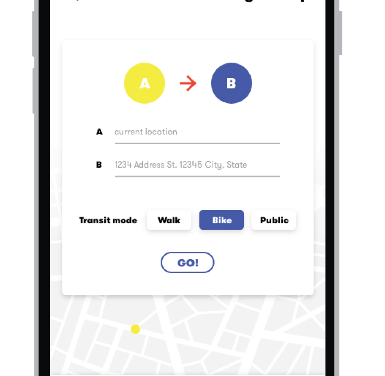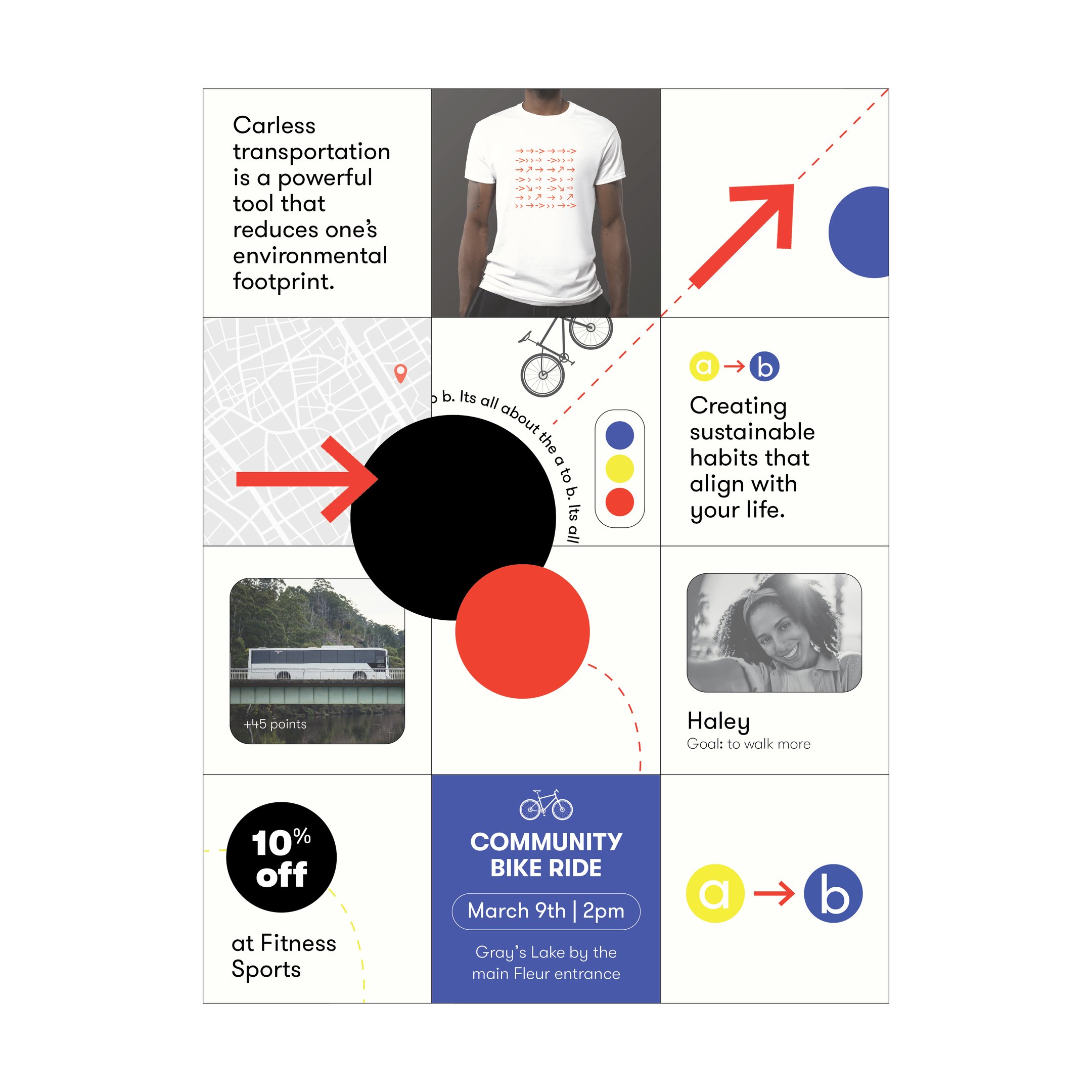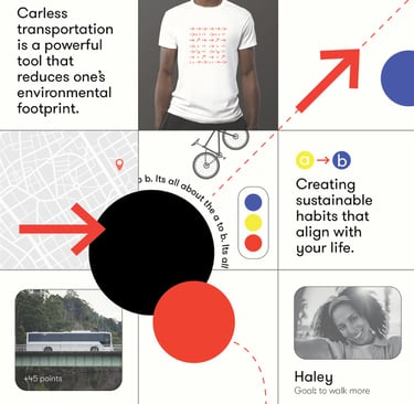 The challenge: How can we encourage people to make small, positive changes to their daily commutes? The solution is A to B, a mobile app designed to incentivize sustainable transportation. Users can earn rewards for choosing to bike, walk, or take public transit, turning a simple trip into a way to make a positive impact on their community and the environment.