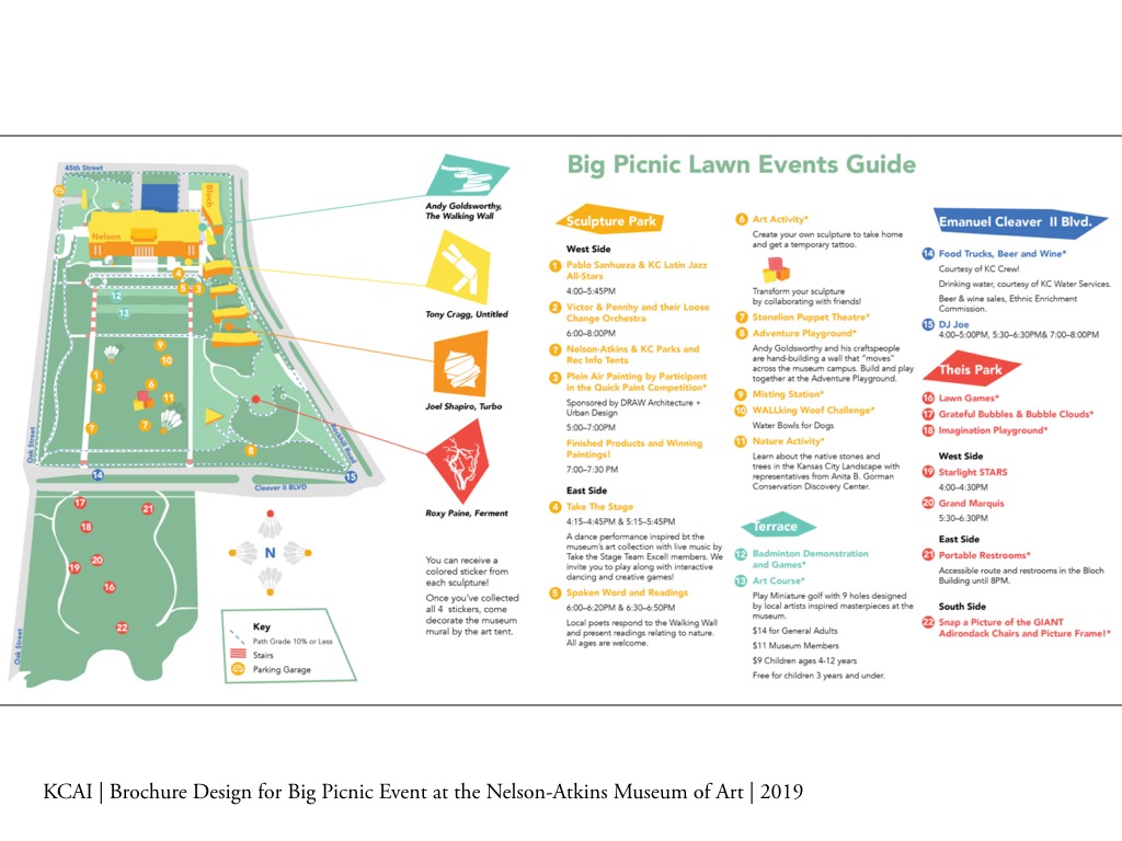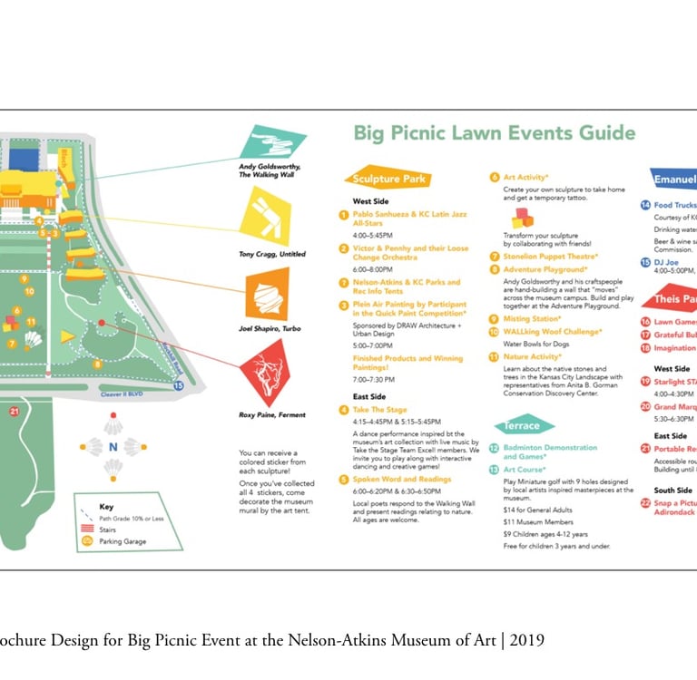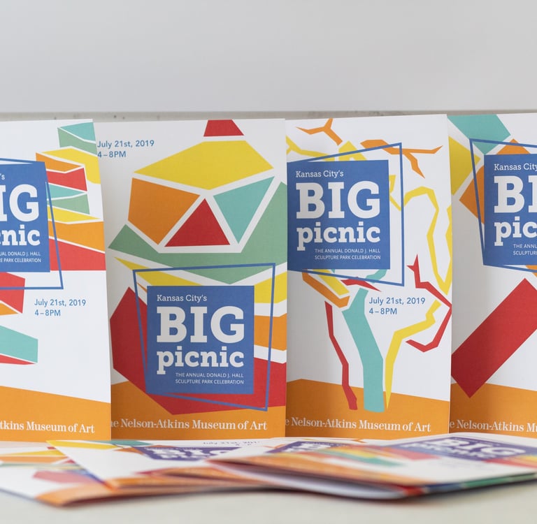 The Nelson-Atkins Museum of Art's annual Big Picnic event provided a unique opportunity to collaborate. Out of all the creative proposals, my group's was chosen to define the visual identity for the summer celebration. I focused on designing the illustrations for the brochure covers and the event's postcard invitations, while my team worked on a variety of other fun assets like temporary tattoos, kid's activities, and Snapchat filters.
