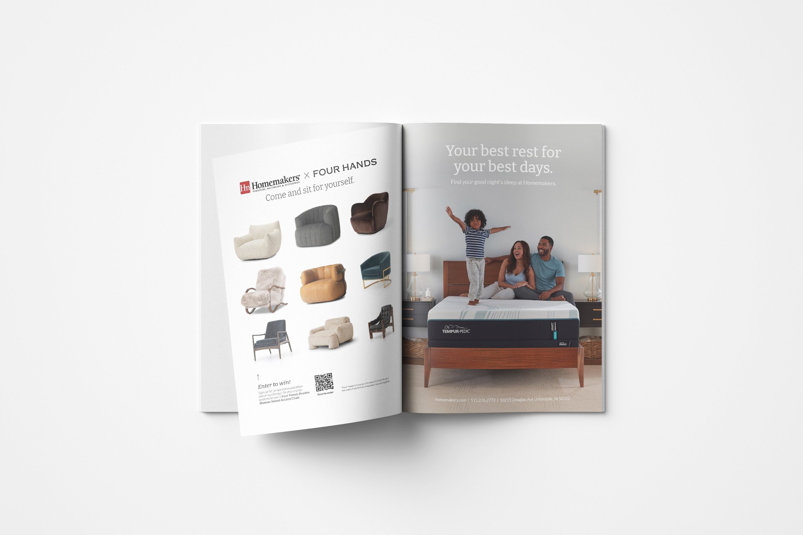 Homemakers Furniture aimed to expand its product line with a new collection of luxury furniture and decor. My team was tasked with creating a sophisticated sub-brand to represent these high-end products. I collaborated closely with the lead CX Designer, who established the initial branding and strategy. My primary role was to develop and design all the public-facing assets for the launch, including brochures, in-store signage, Meta ads, and editorial print ads.